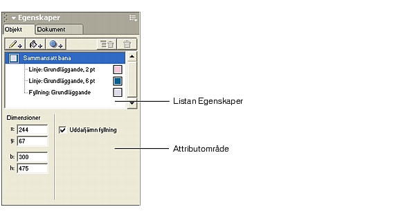 Med objektpanelen kan du visa, redigera och ändra ordning på ett objekts linjer och fyllningar.