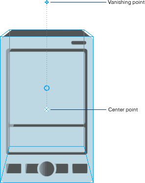 The object redraws with the z axis (dotted line) now angled towards the vanishing point.