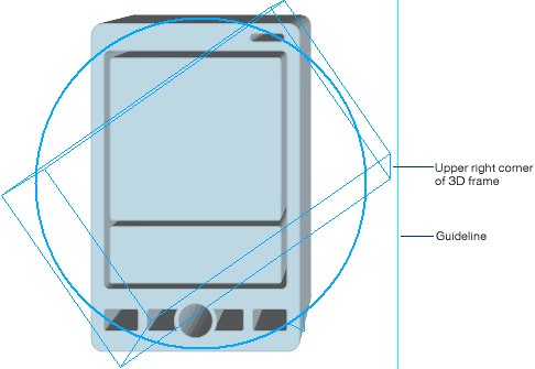 Drag the pointer down until the upper right corner of the blue 3D frame is nearest to the vertical guideline.