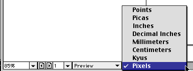 Because you view the Web using a computer monitor, the standard unit of measurement for Web objects is the pixel. To avoid converting units of measurement, you should set your FreeHand document's unit of measurement to pixels using the Units pop-up menu.