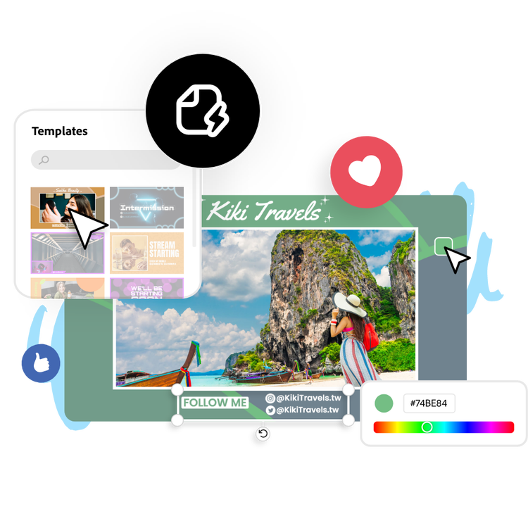 Deixe o Adobe Express ser o seu especialista em design de overlays para Twitch.