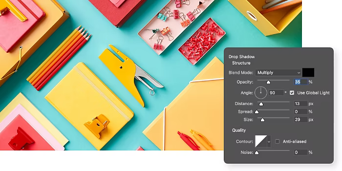If you’re adding a new element to an existing photo, you can use a drop shadow to make it look natural.
