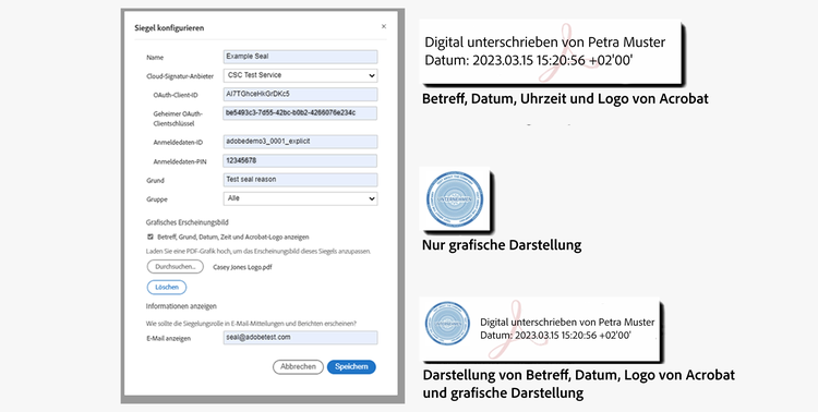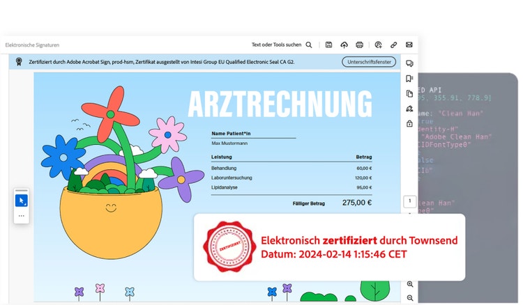 Neben umfassenden Funktionen für elektronische Signaturen bietet Acrobat Sign auch eine Funktion für elektronische Siegel an. Damit können Unternehmen E-Siegel mithilfe digitaler Zertifikate anwenden, die ihrer juristischen Person ausgestellt wurde. Sobald das Zertifikat durch einen Vertrauensdiensteanbieter ausgestellt wurde, können automatisch mehrere Benutzende elektronische Siegel für ihre Organisation anwenden. Sie benötigen dafür lediglich eine Berechtigung. Voraussetzung für die Nutzung der Funktion für elektronische Siegel in Acrobat Sign ist ein Unternehmenskonto, die Anmeldedaten zur Verifizierung der Identität gegenüber dem Vertrauensdiensteanbieter sowie ein Vertrauensdiensteanbieter mit einer API-Integration des Cloud Signature Consortium (CSC), dem auch Adobe angehört.