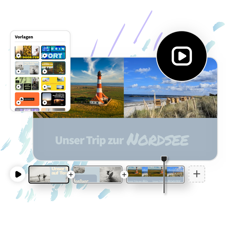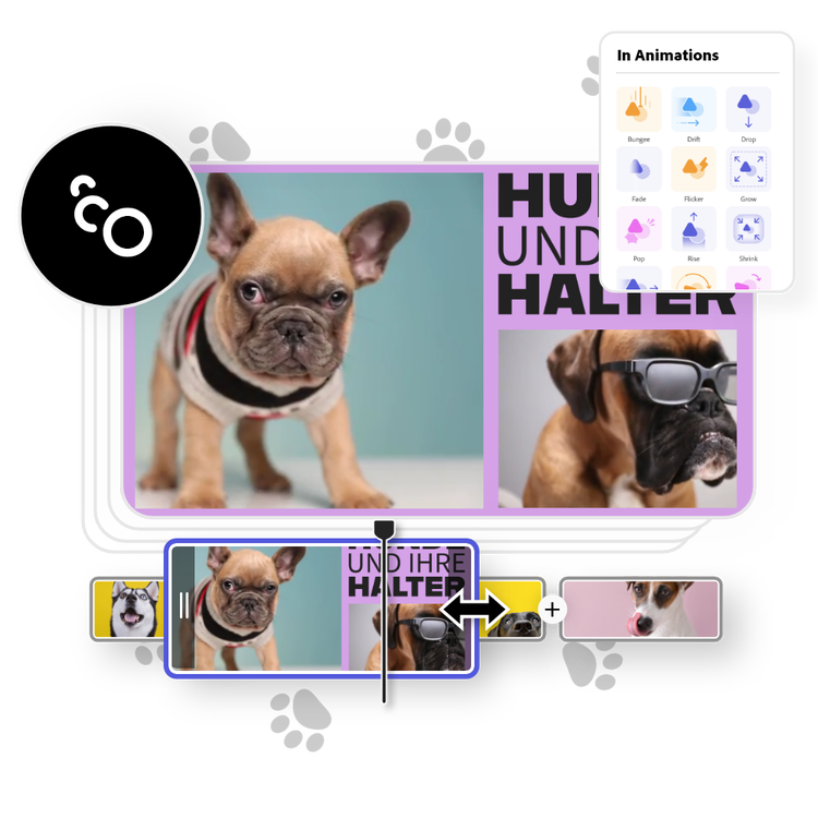 Erstelle Slideshows, Erklärvideos, Montagen und mehr und teile sie auf allen digitalen Plattformen.