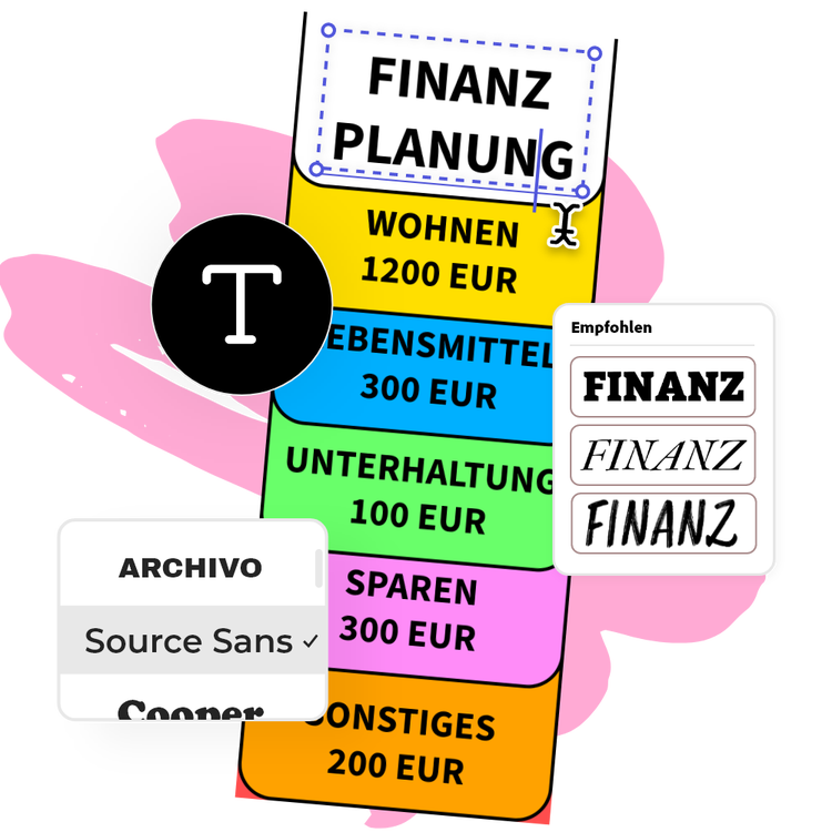 Stöbere in den zahlreichen lizenzierten Adobe Fonts. Wenn du dich nicht entscheiden kannst, welche Schriftart du verwenden sollst, macht dir Adobe Express Vorschläge für Schriften, die du im selben Projekt ausprobieren kannst. Wähle deinen Text aus und entscheide dich für eine der Bearbeitungsoptionen, einschließlich Form, Schatten und Kontur. Die Möglichkeiten der Textgestaltung sind unbegrenzt.