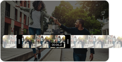 Komme mit dem Videoschnittwerkzeug gleich zum Wesentlichen. Verwende das Griffsymbol, um deine Parameter zu setzen oder um die genaue Zeit in die Zeitfelder zu Beginn und am Ende einzugeben, sodass du genau den Moment einfängst, an dem du schneiden willst.