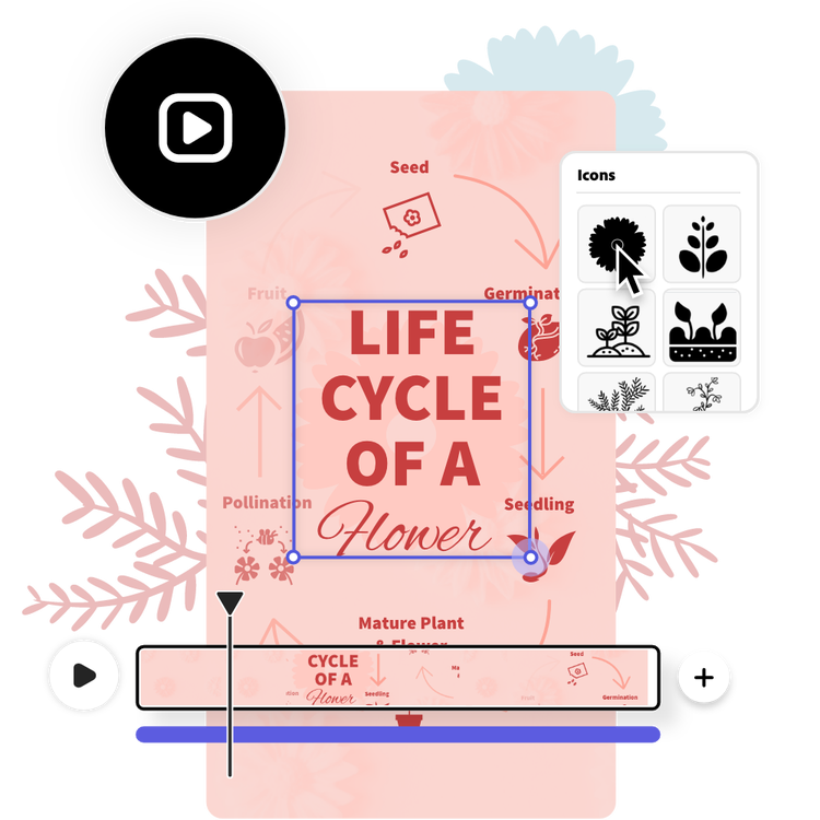 Add movement to any caption, icon, image, or video in your project to keep viewers engaged.