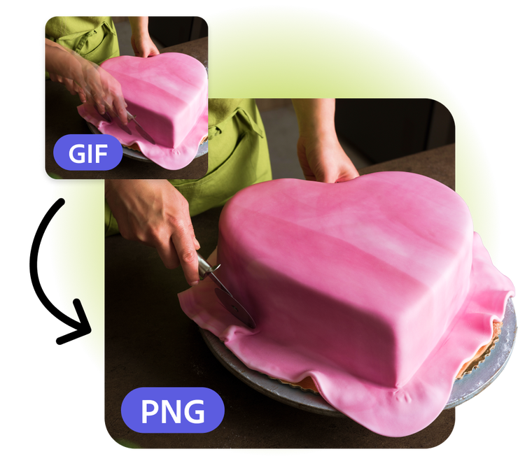 GIFs are a tried-and-true way to connect with audiences. When you convert your GIF to a PNG, you can easily share the original GIF as an eye-catching social media post promoting your event or as a slide in your customer presentation. It’s easier than ever to highlight a new service, unveil an anticipated product, or advertise a sale by using the GIF to PNG maker.