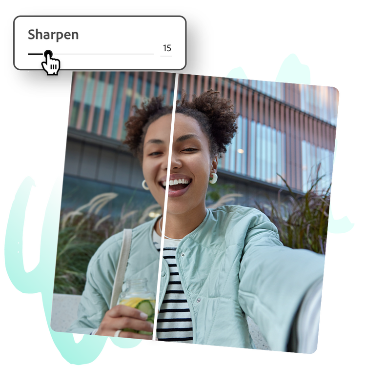 Enhance your photos using the Adobe Express sharpen image tool. Add clarity to lo-res images, out-of-focus photos, or blurry images.