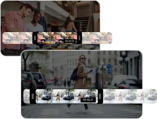 Assemblez différents clips vidéo et images et découpez-les selon vos besoins. Créez instantanément du contenu vidéo exceptionnel à partager sur votre chaîne YouTube, TikTok, votre site Web et d'innombrables autres destinations.