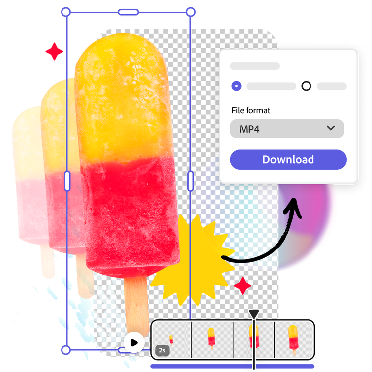 Unduh video Anda yang bebas latar belakang untuk disimpan, dibagikan, atau terus diedit di Adobe Express.