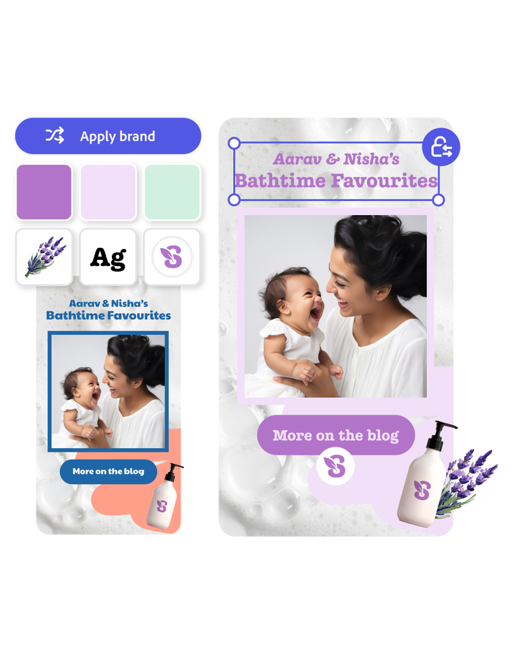 Empower everyone on your team to create on-brand content. Give them time-saving tools to create with confidence. Put hundreds of thousands of templates, fonts and Adobe Stock assets at their fingertips. And tap into cutting-edge AI that’s designed to be safe for business.