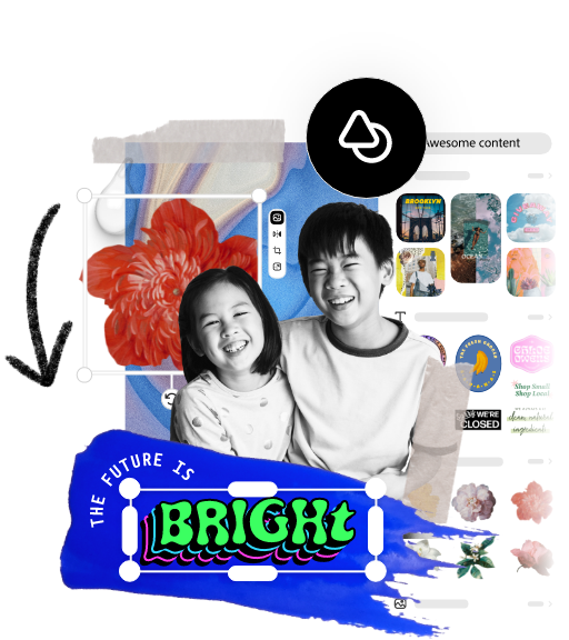 Add your own photos or videos and start your creation from there. You can also import your PSD or Ai files and Adobe Express will recognize all of your layers.
