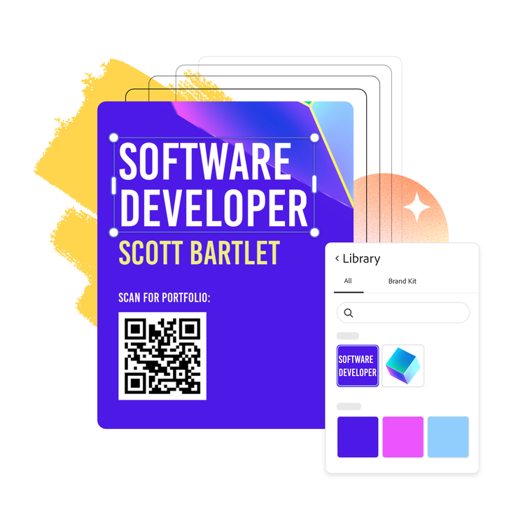 Adobe Express inspires you to think big and explore innovative opportunities with each new project you take on. Design your business card, flyer or banner with a scannable QR code that links to your website or social media channels, so curious customers can learn more about the products or services you have to offer. Repurpose your business card design for other needs including flyers, banners, advertisements, and much more.