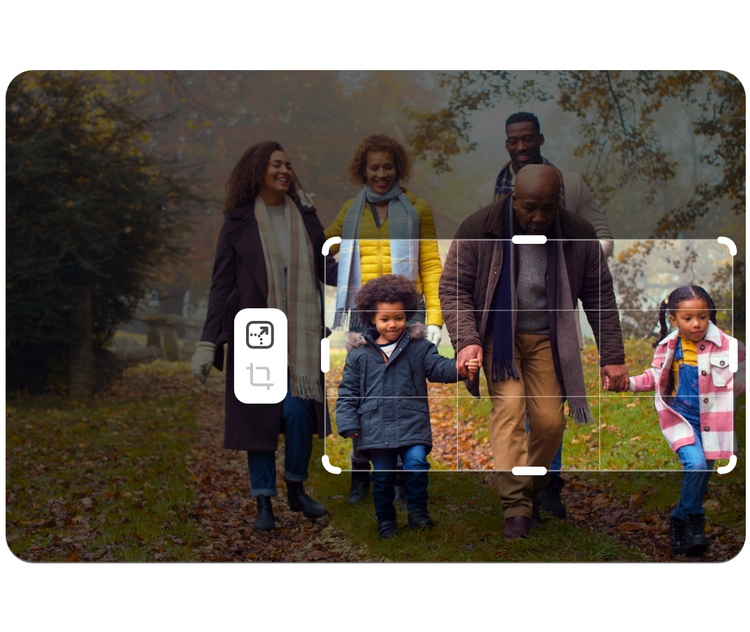 Modifica facilmente le proporzioni del tuo video in modo da poterlo condividere su qualsiasi piattaforma social. Seleziona una dimensione quadrata, orizzontale o verticale, quindi trascina il video per adattarlo al nuovo formato. Usa il nostro strumento di ritaglio sul tuo iPhone, Android o qualsiasi altro smartphone, così come sul tuo desktop, compresi Windows e Mac.
