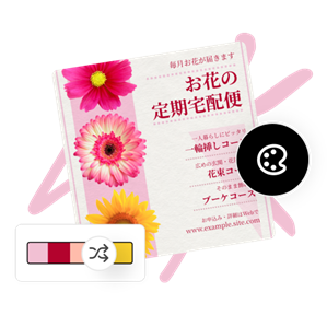 色には、音楽や記号、言葉と同じように様々なメッセージが込められています。配色を調整するだけで、デザインの印象をカンタンに変えることも可能です。デザインをはじめる際は、まず自分にとって大切な色は何かを考えてみましょう。既にテーマカラーが決まっているのか、季節に合わせた色を使うのか、または特別なお祝いに向けたデザインに必要な色なのかなど、目的に応じて選ぶ色は変わります。イメージが固まったら、カラーメニューを開いて配色を工夫しましょう。