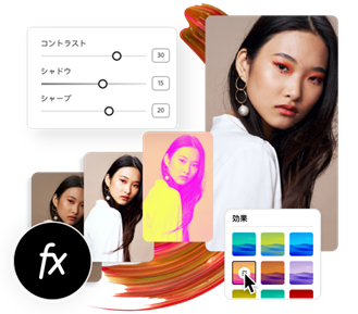 Adobe Expressなら、プロのような画像編集をどなたでも楽しめます。無料のフィルターやエフェクトを活用して、個性的で魅力的な画像に仕上げましょう。画像の明るさや色合いの調整、テキストやアニメーションの追加もカンタンです。オリジナリティあふれる画像があっという間に完成します。