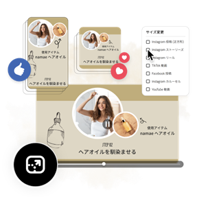 手軽なドラッグ&ドロップ操作で、動画をカンタンに作成できます。サイズ変更もワンクリックで可能なため、TikTokやInstagram、Facebookに合った動画に仕上げられます。さらに、Adobe Expressのスケジューラーを活用すれば、ライブ配信に向けた投稿スケジュールの設定もスムーズです。