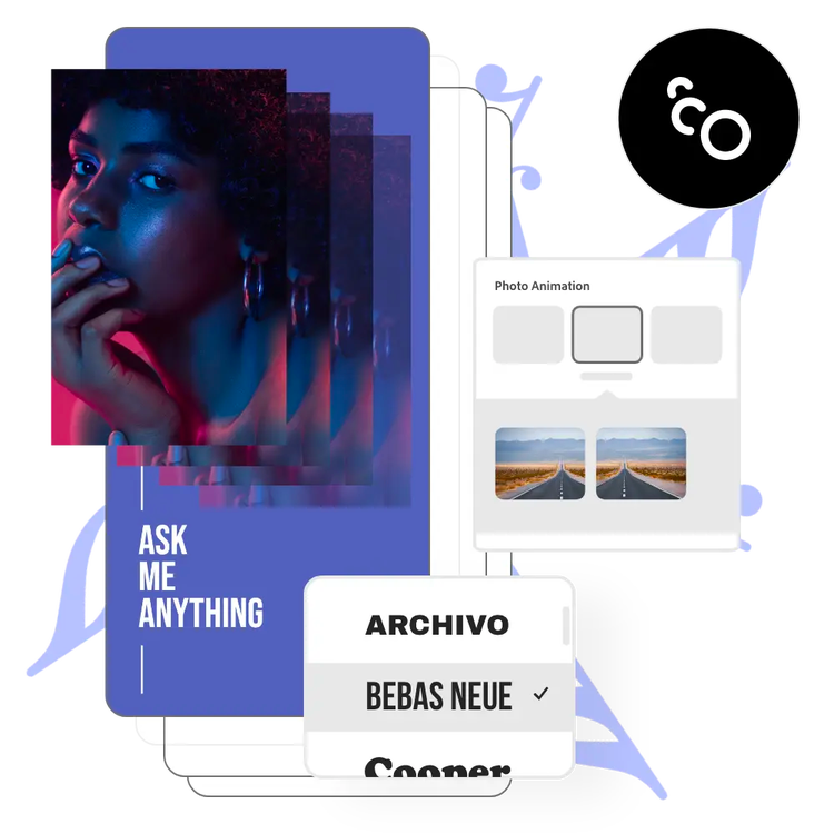 계속 편집하고 사진에 애니메이션, 아이콘, 텍스트를 추가하세요. 새로 편집한 사진을 효과와 함께 다운로드하여 디지털 채널과 소셜 플랫폼에서 온라인으로 공유하세요.