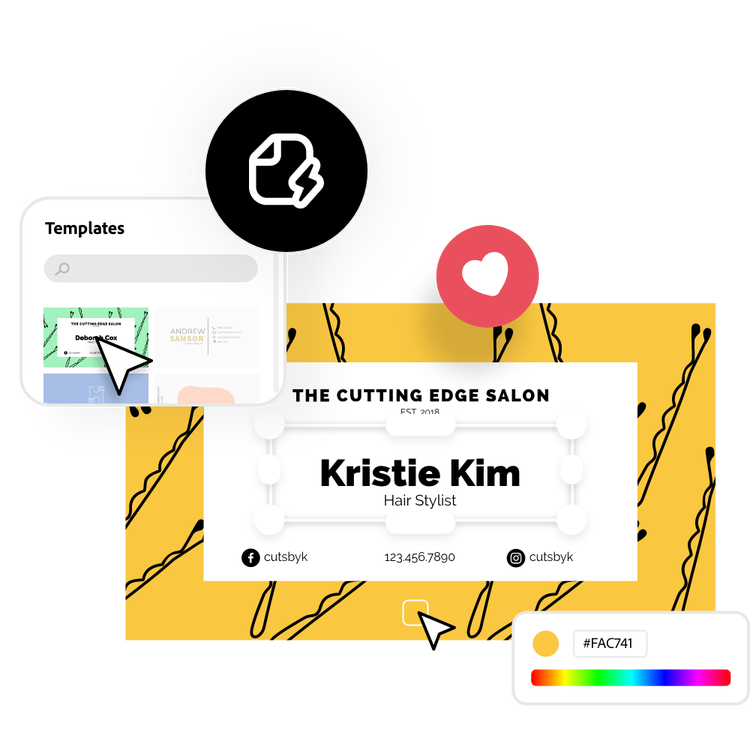 Open Adobe Express for free on your desktop or mobile device to begin creating your business card. The intuitive workspace makes it easy to start from scratch or jump straight into a pre-built layout. Select your preferred size and orientation and decide whether you want a single-sided or double-sided design.