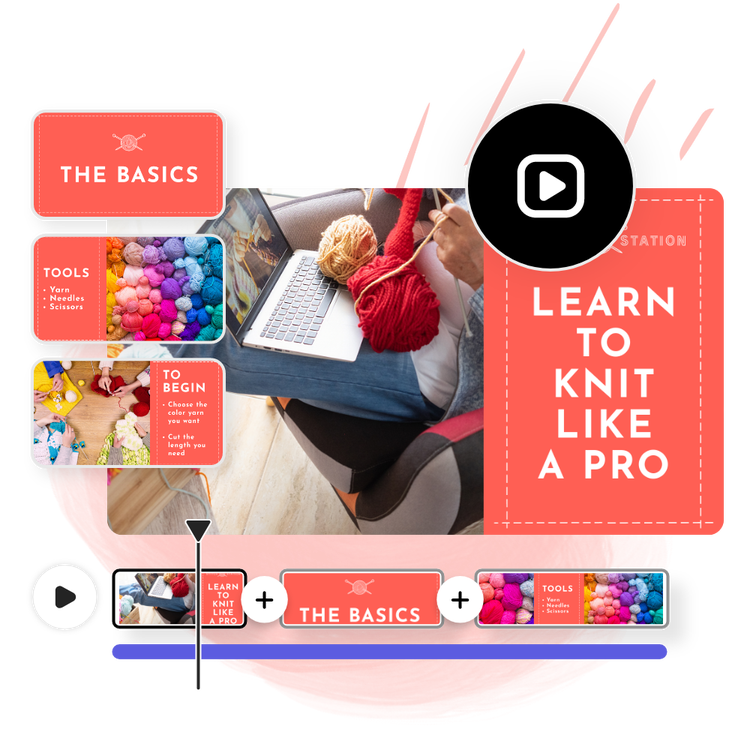 將照片和影片剪輯結合成單張幻燈片。拖動每個剪輯角落縮短場景或分割影片。還可以將動態過場效果應用到專案中的各個文字、圖示或圖形元素中提升成果質感,讓觀眾目不轉睛。