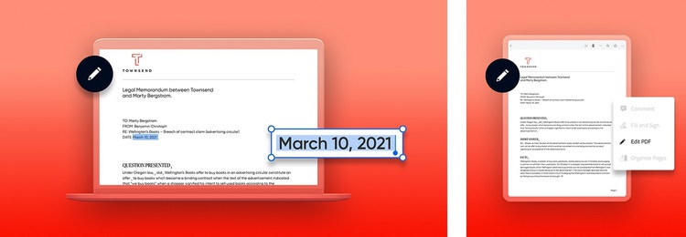 Acrobat is built with teams in mind. It’s easy for team members to edit copy, highlight specific passages, and make comments within the memo as it’s being assembled. With digital signatures, collaborators and stakeholders can also give their sign-off on sections and subsections quickly, easily, and securely.