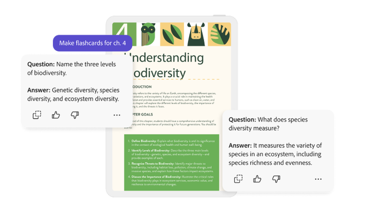Acrobat AI Assistant finds the information so you can spend more time studying.