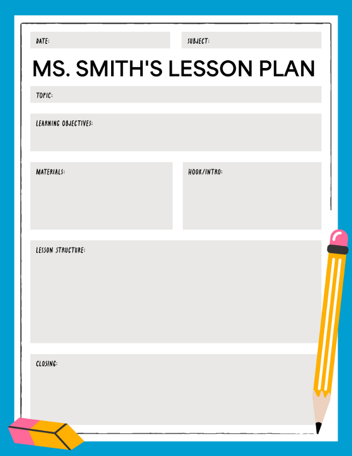 Creating a detailed and impactful lesson plan takes a lot of work. To help you get started, we’ve created a free downloadable lesson plan template. Our template includes all the relevant sections to jump-start your planning process and customization options to ensure that the final document aligns with the needs of your class.