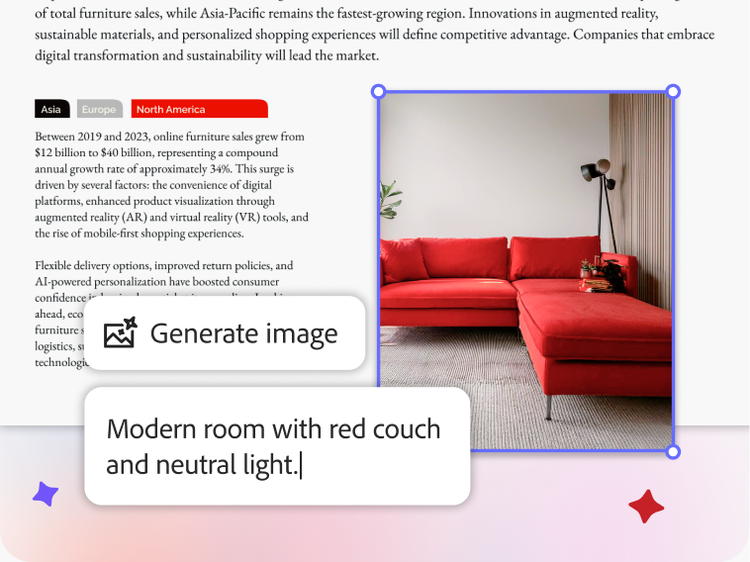 In Acrobat Studio, you can convert different file types and bring them all together in PDF Spaces, then use AI Assistant to jump-start content creation, analyze data, and uncover insights inside your documents. With Adobe Express, you can access templates and easy design tools to create documents.
