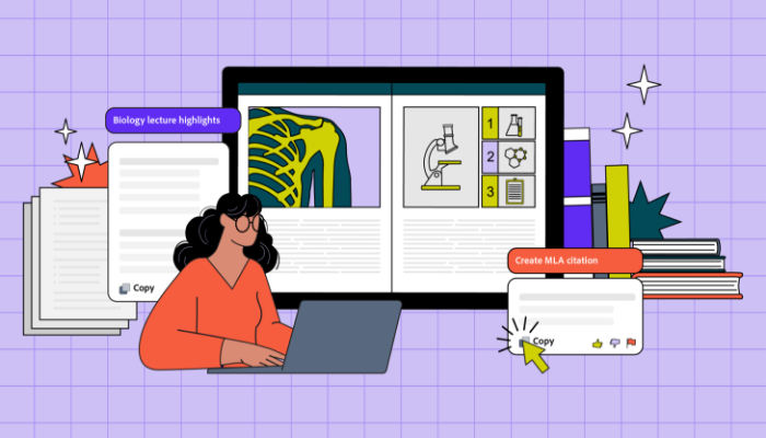 The slightest formatting mistake can cost you valuable points on your grade and push that “A” out of reach. Further complicating things, each professor has their own preferred citation format. Fortunately, Acrobat AI Assistant makes creating citations quick and easy.