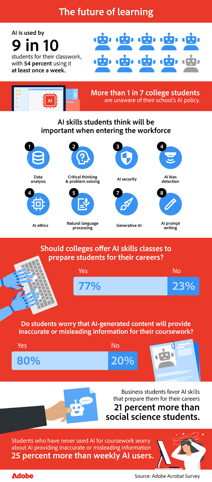 - 77 percent of college students surveyed say that colleges should be offering artificial intelligence skills classes to better prepare them for careers.