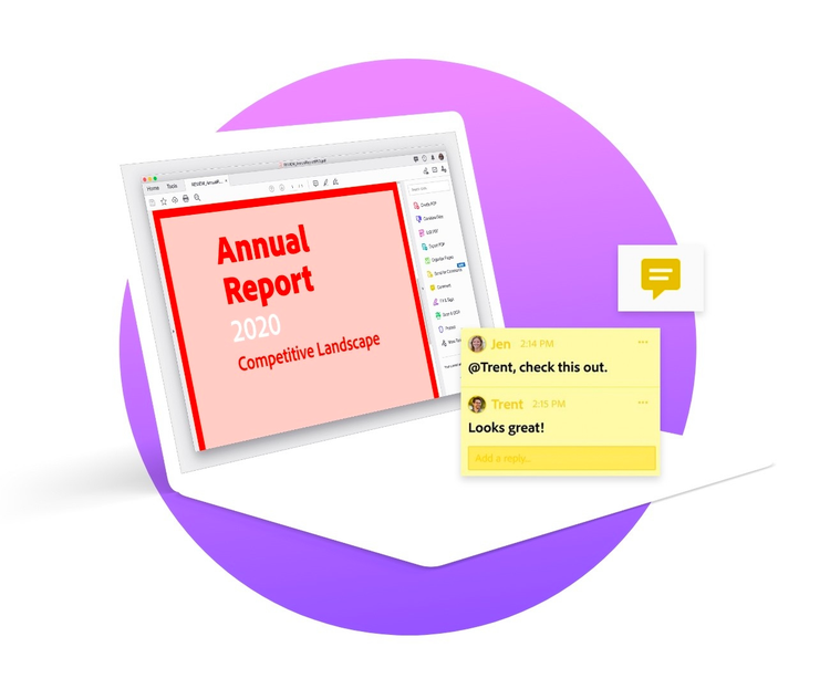Acrobat turns hours of video conferences and email chains into speedy reviews. Securely share a PDF with your team or client to collect comments and provide feedback in real-time.