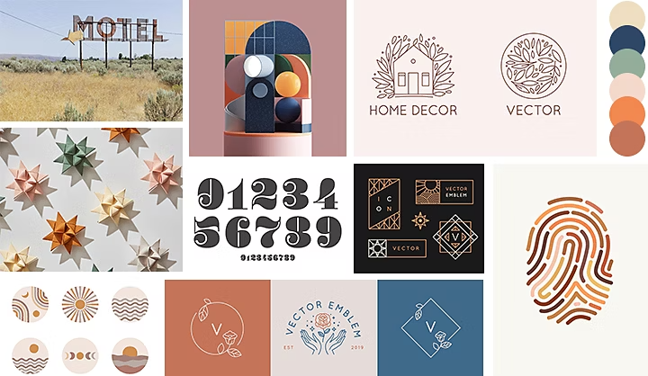 Mood Boards are a great way to conceptualise your logo, explore what’s out there and help your client visualise the art direction. Search Behance to gather logo inspiration and design examples from other artists and make a compilation of logos, colour palettes, typography and imagery that you might like to include in your own design.