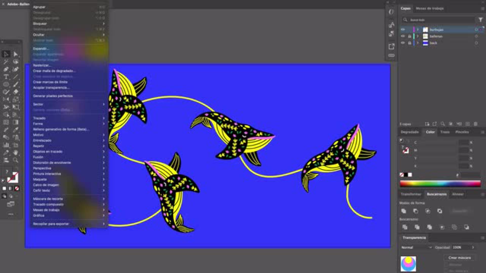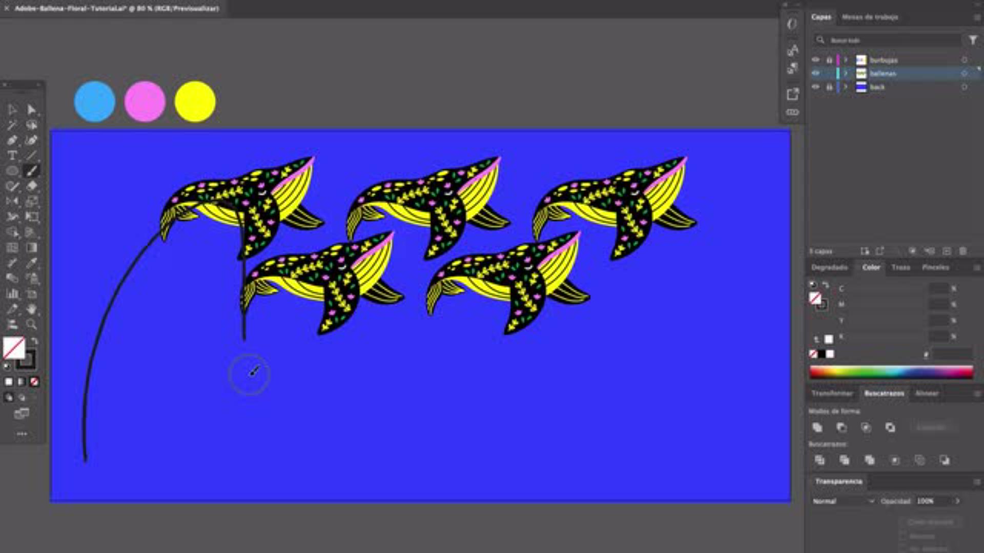 Sumérgete en este tutorial donde aprenderás a dominar la herramienta Objetos en trazado de Illustrator, una función que transformará la manera en que alineas y organizas tus diseños. A través de una ilustración vibrante con ballenas y burbujas en movimiento, descubrirás cómo dar ritmo y fluidez a tus creaciones, haciéndolas más eficaces y visualmente impactantes.
