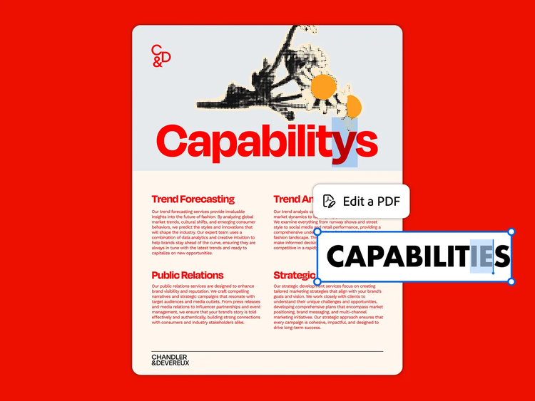 Bearbeitet und teilt Dokumente, um sie in kürzester Zeit elektronisch unterschreiben zu lassen. Nutzt den KI-Assistenten von Acrobat (als Add-on verfügbar), um euren Dokumenten Fragen zu stellen, mit nur einem Klick Zusammenfassungen aufzurufen und mit PDF Spaces statische PDF-Dateien in interaktive Knowledge Hubs zu verwandeln.