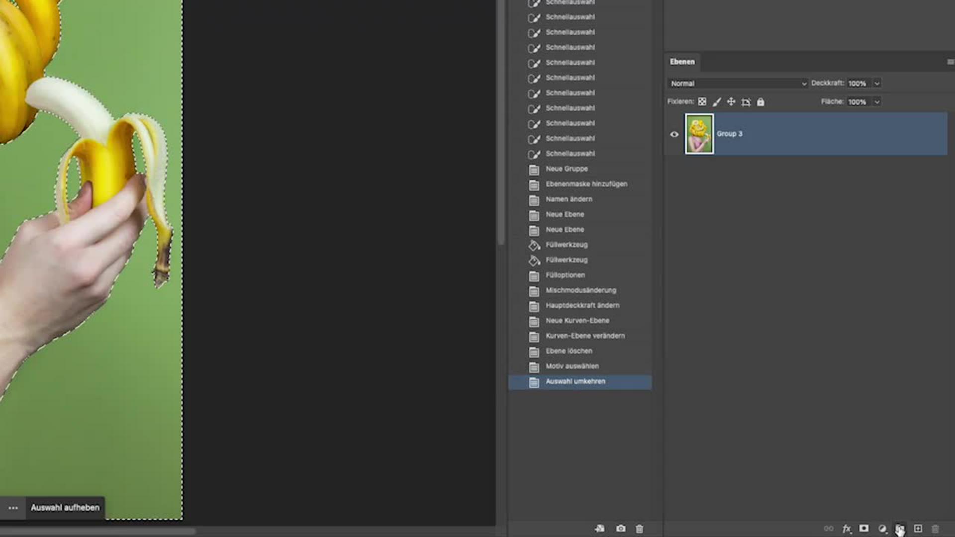 Mit dem Auswahlwerkzeug oder Auswahl → Farbbereich markierst du die gewünschten Bereiche im Bild. Eine Ebenenmaske trennt Hintergrund von Motiv. In der Anzeige des Ebenenfensters kannst du eine saubere Struktur anlegen, sodass alle Methoden übersichtlich bleiben.