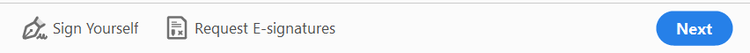 - On the main screen, select E-Sign, and you’ll see Fill & Sign in the drop-down menu. Click Try Now – it’ll take you to a new screen where you can select your file. You can also drag and drop the file into the box. Once it opens, you head to the toolbar at the top and select either Sign yourself or Request signatures before clicking on Next.