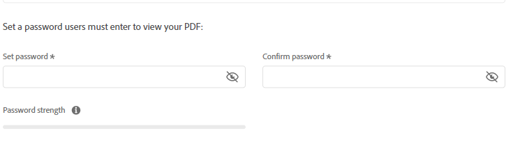 2. Once you’ve uploaded your document, you’ll get the box below. Set your password, and it will tell you how strong it is. The stronger, the better.