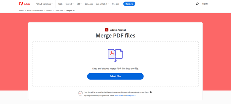 - Drag and drop the PDF files that you want to merge or click on the “Select files” button to upload them.