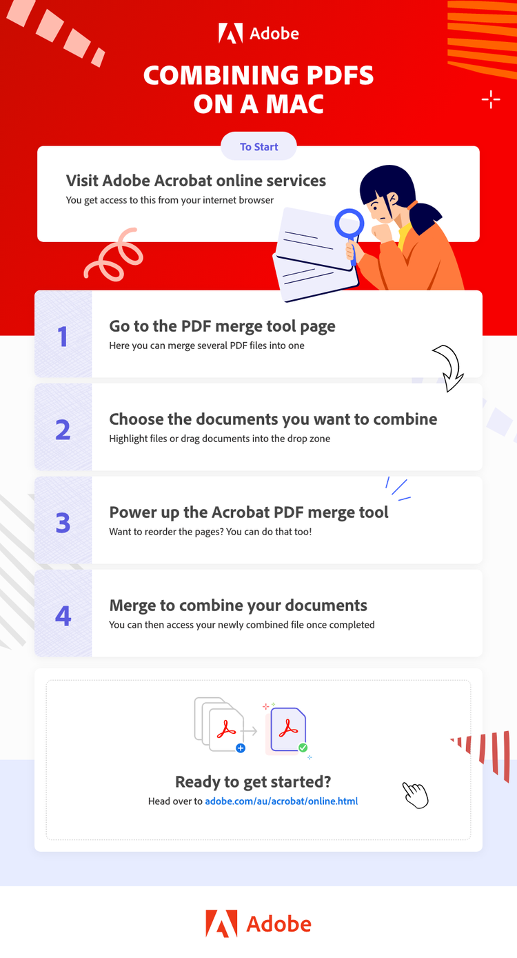 If you want to use Adobe Acrobat Reader to merge your PDF files on Mac instead, it’s also a simple process.