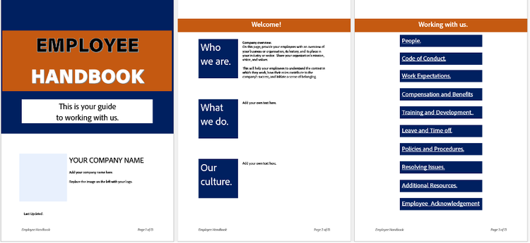 Customise employee handbook templates to suit your business.