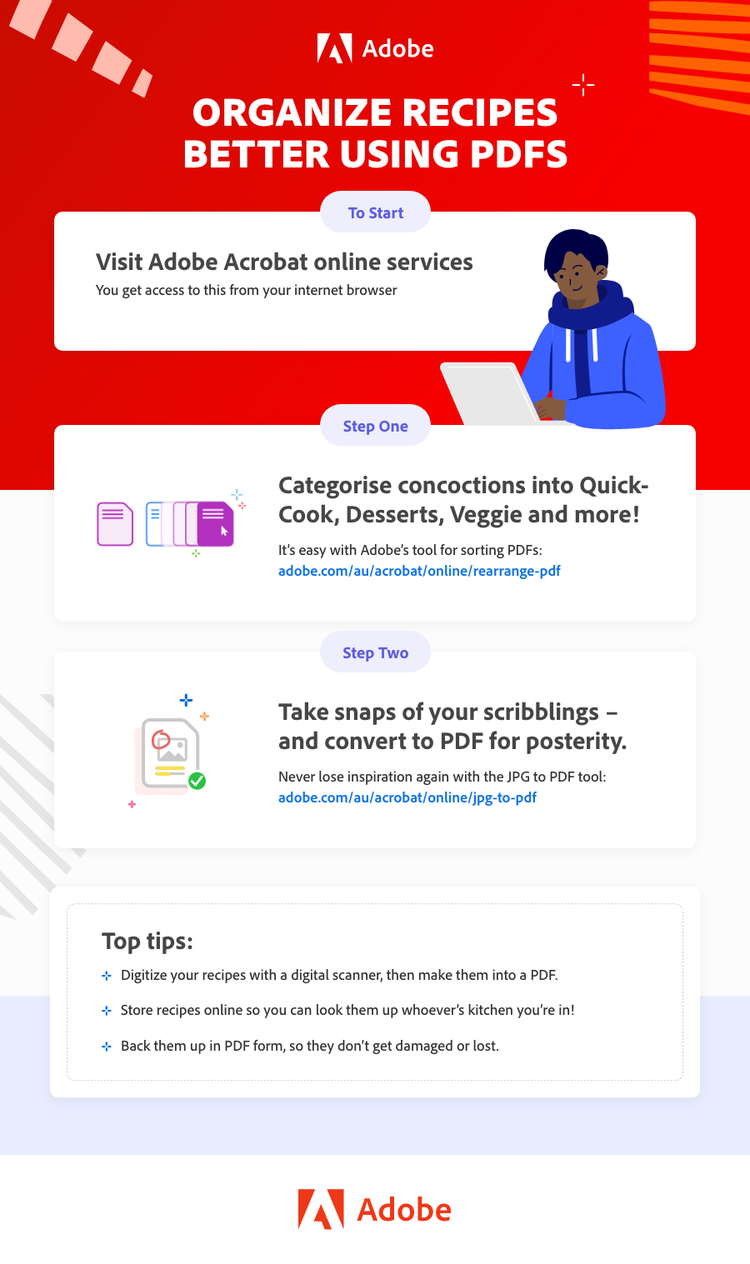 At Adobe, we’re not just about the business world. We want to help you be as organized at home as you are in the office. Take a look at our handy guide to help you organize your recipes.