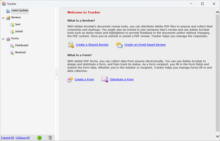 You can track PDF document reviews on the files you have in Adobe Document Cloud from within an Adobe Acrobat app or Adobe Acrobat Online.