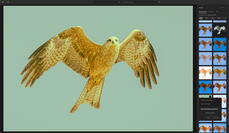 Recommended presets have been developed by the Lightroom community and are suggested based on images with similar content. The Recommended tab is located right next to the Premium tab and can be used as a great source of inspiration and education.