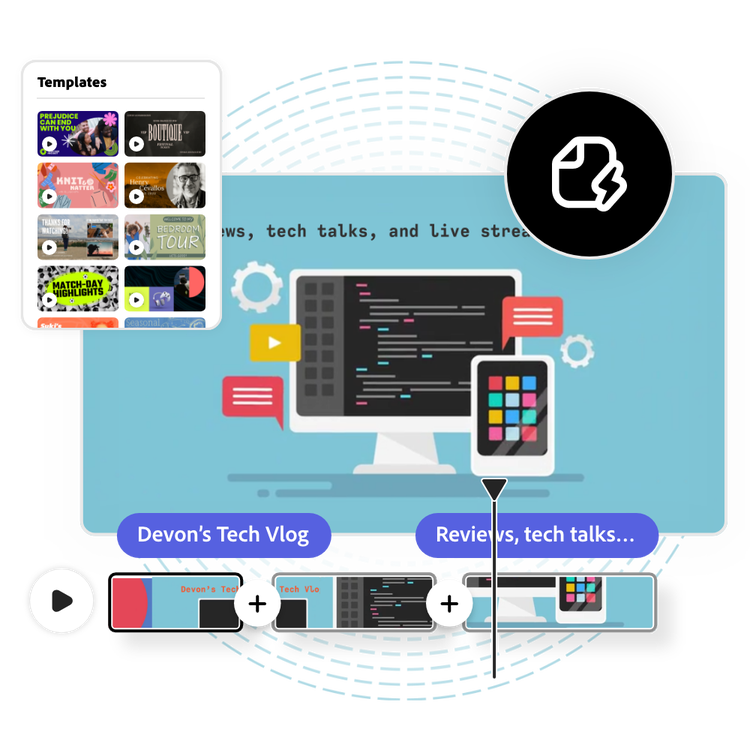 Make video intros, outros, social stories, posts, and more for your channels in Adobe Express.