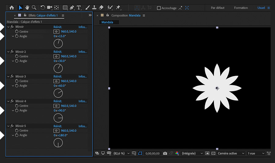 Créez un visuel original de type mandala en retournant, en inversant ou en faisant pivoter plusieurs fois un métrage dans Adobe After Effects.