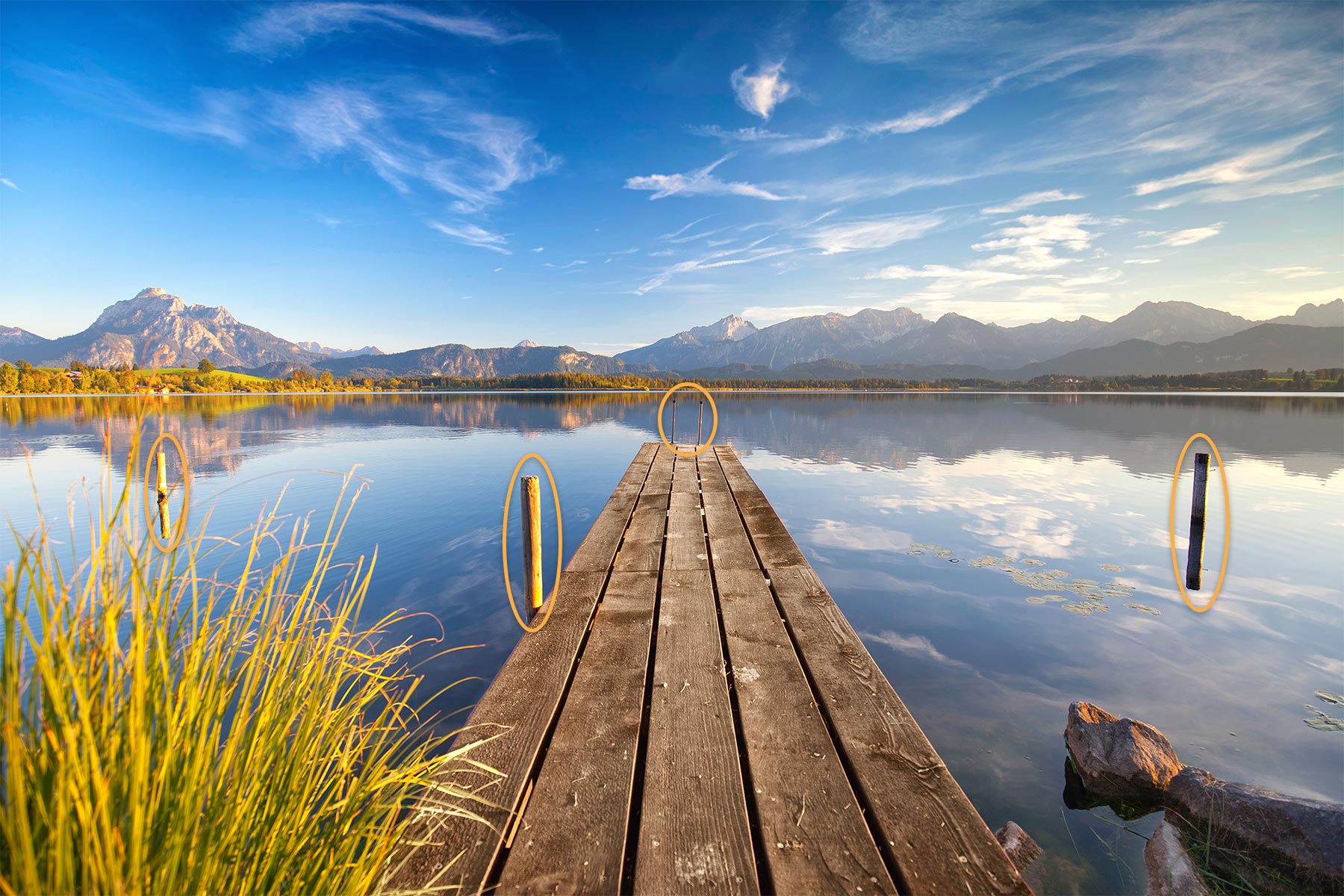 Testez ces techniques sur le fichier d’exemple ou sur l’une de vos photos. Commencez par identifier les objets à supprimer. Les éléments que nous allons éliminer sont entourés sur la photo ci-dessous.