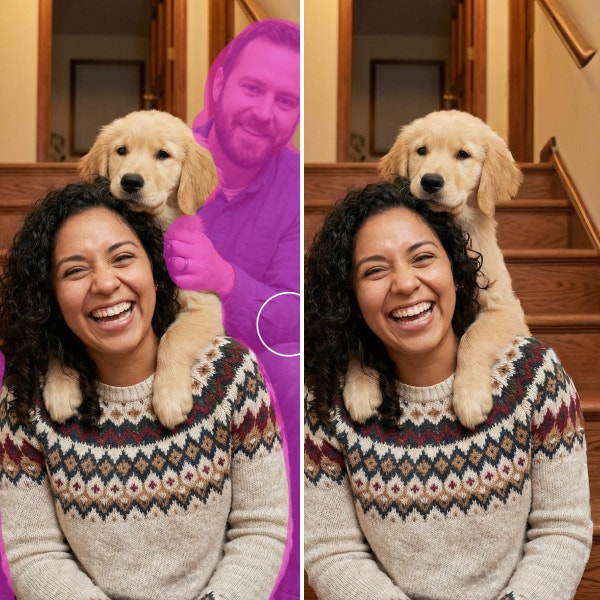 Използвайте същата функция, която бихте използвали за премахване на обекти от снимки, за да редактирате кадрите от събитието си до съвършенство. Елиминирайте гостите на заден план, които правят неловки гримаси, минават през алеята или блокират ключови моменти.
