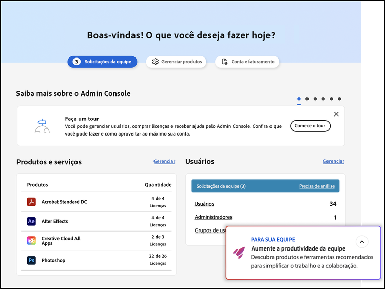 Atribua e reatribua licenças na empresa a partir de um Admin Console centralizado e simplifique o faturamento para tornar o orçamento mais previsível.
