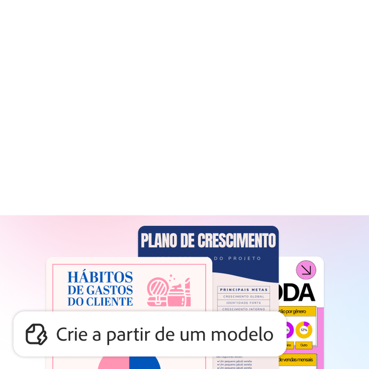Crie panfletos, infográficos ou publicações para as redes sociais com modelos profissionais. Depois aprimore o conteúdo com ferramentas simples e imagens personalizadas geradas por IA.